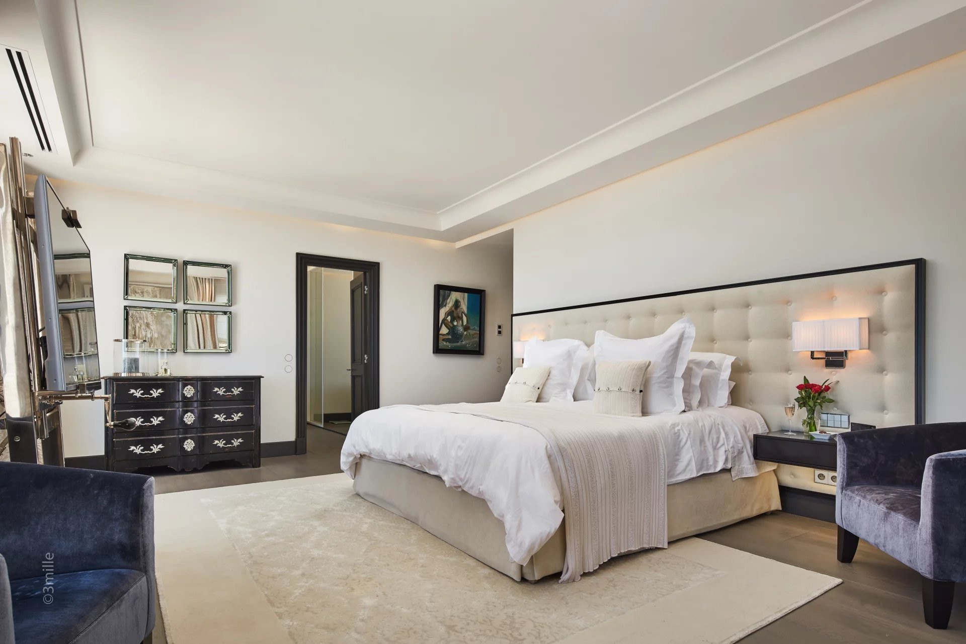 La villa dispose de six chambres en suite, toutes équipées de leur salle de bain privative ainsi que d’une télévision.