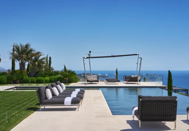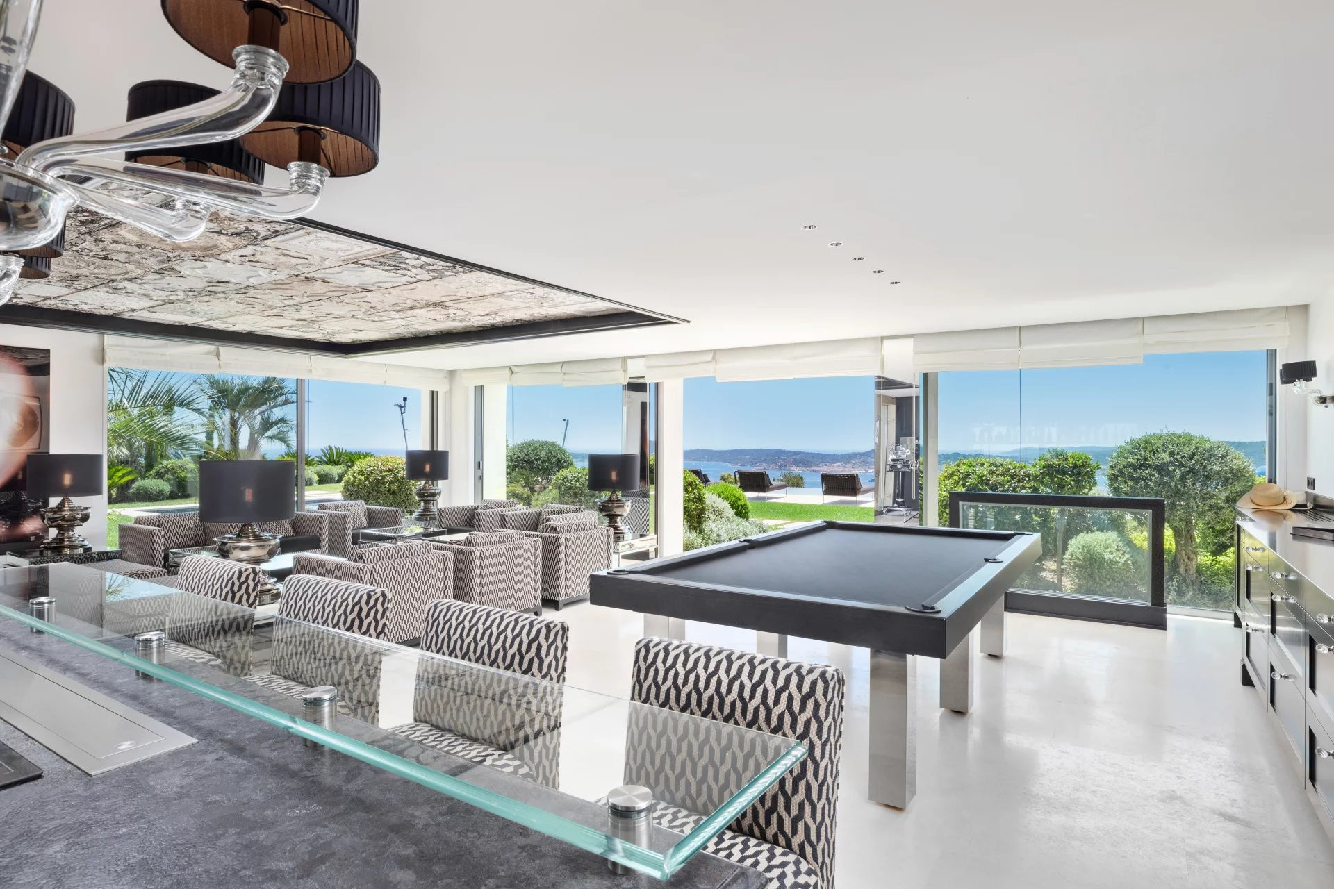 Logement de 790 m², avec vue sur la mer et le jardin.