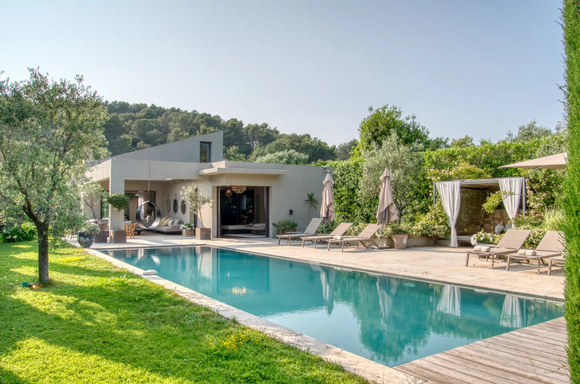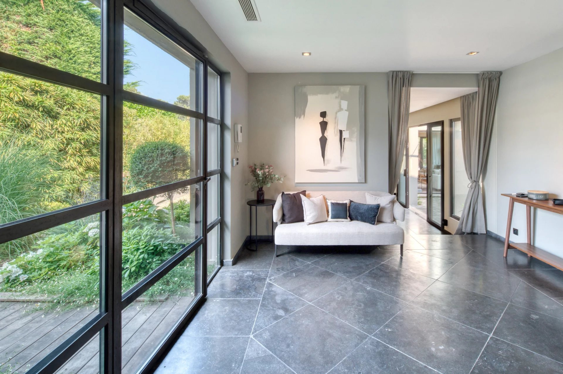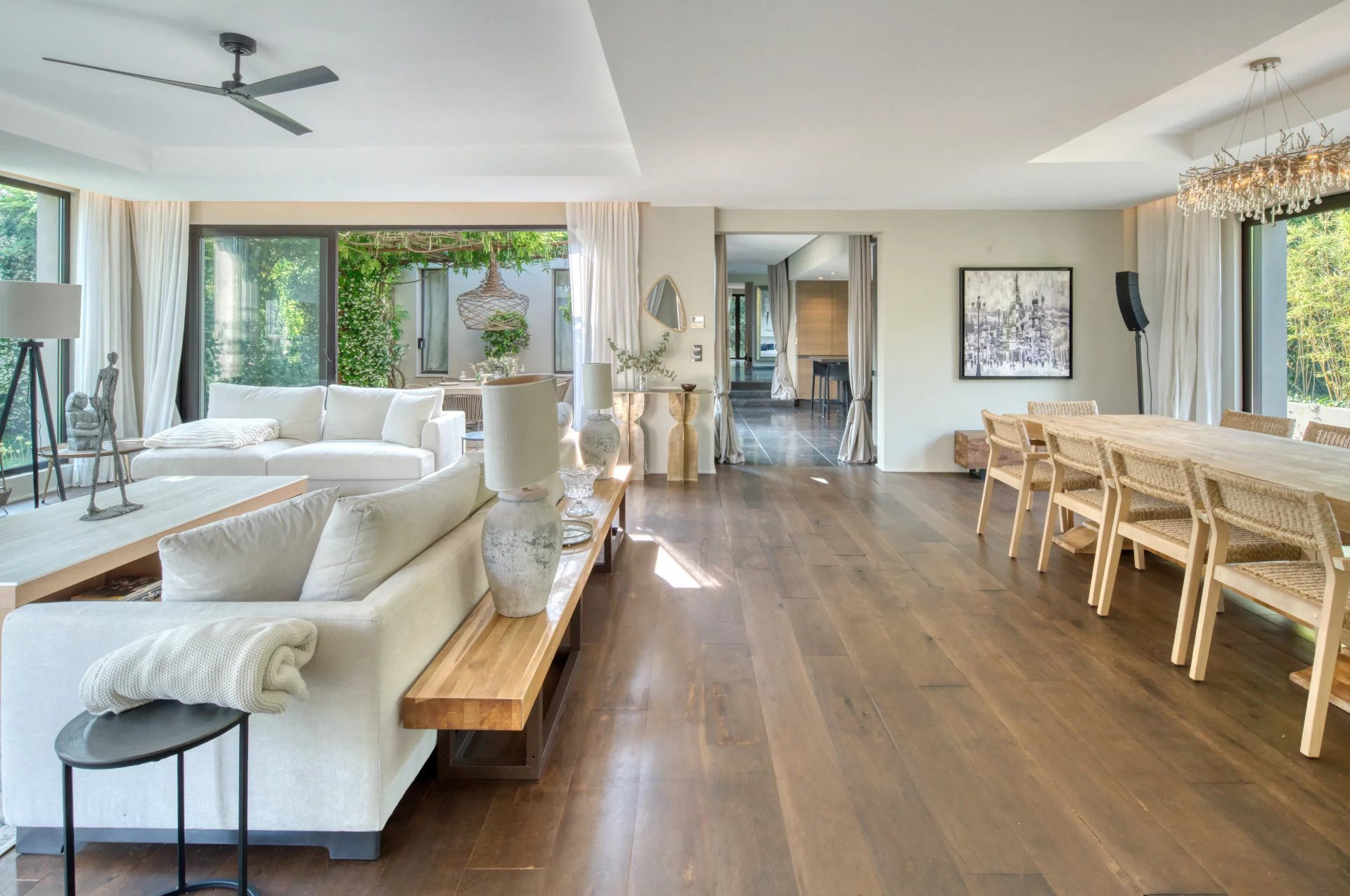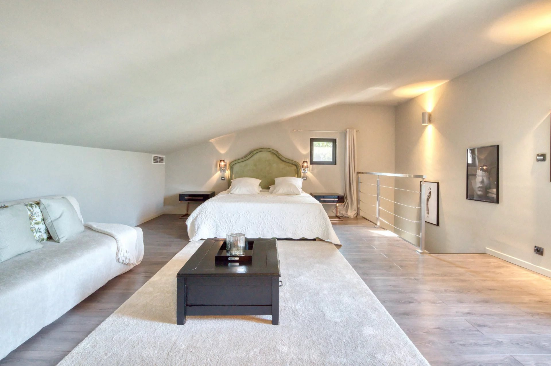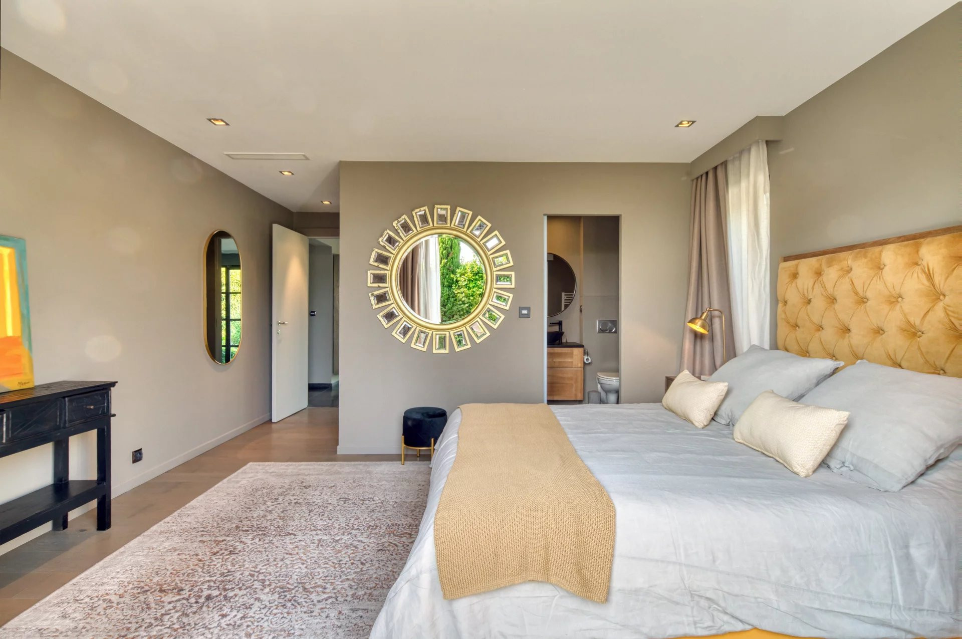 Nichée dans un écrin de verdure paysager de 1 800 m², à seulement quelques minutes à pied du célèbre village historique de Mougins, cette élégante villa de style néo-provençal offre un cadre raffiné mêlant charme local et confort contemporain. Entièrement rénovée, elle déploie 400 m² d’espaces de vie lumineux, décorés avec sobriété et chaleur.