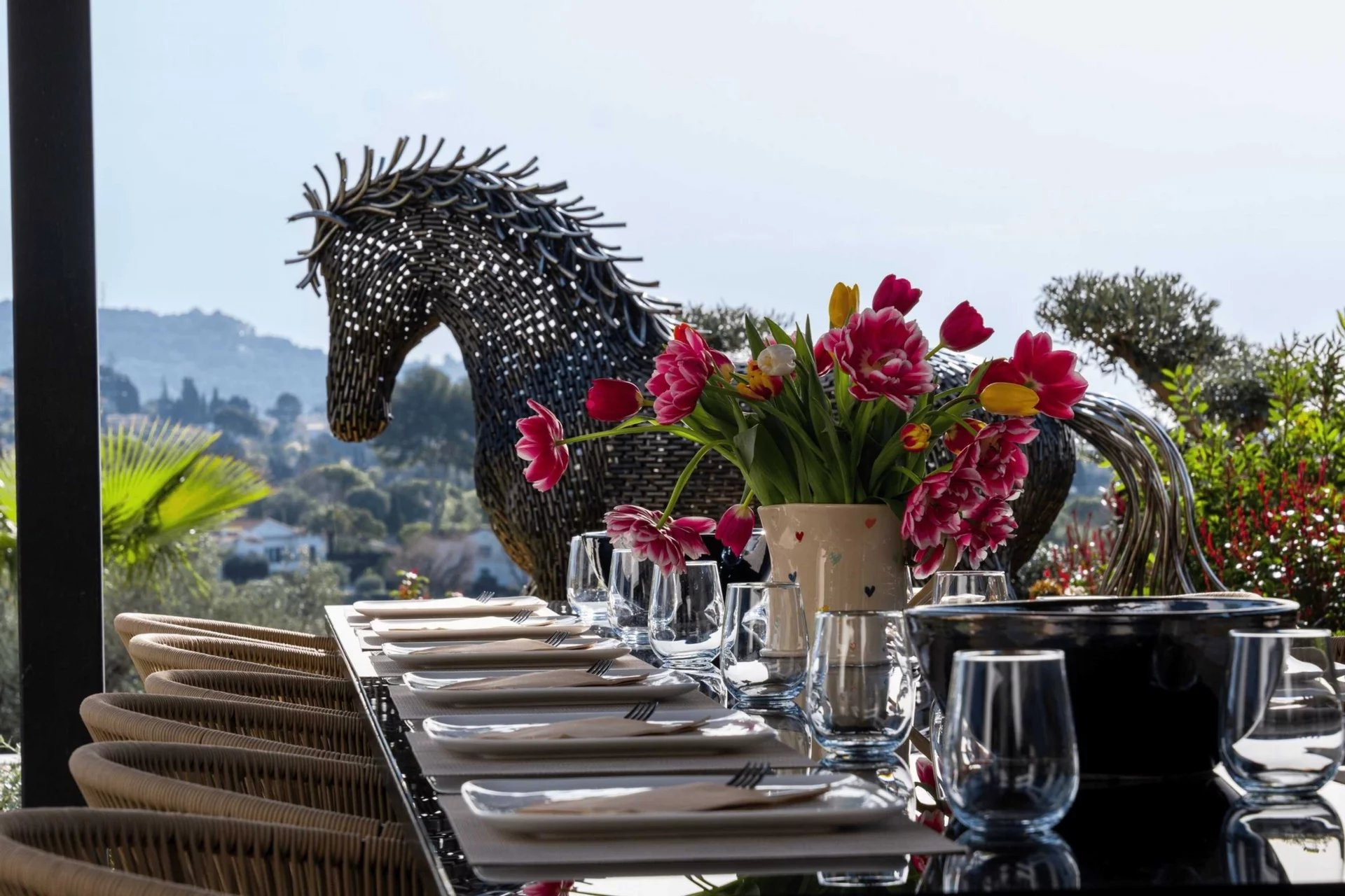 À quelques pas du village historique de Mougins et à seulement quelques minutes de Cannes, cette villa somptueuse de 1200m², érigée sur un terrain de 26 000m², offre une expérience de vacances luxueuses sur la Côte d’Azur. Méticuleusement rénovée, elle marie habilement le charme de son architecture d'origine à une décoration sophistiquée et élégante, créant ainsi un équilibre parfait. La villa principale peut accueillir jusqu'à 14 invités dans des espaces généreux et confortables, tandis que ses nombreuses dépendances peuvent accueillir jusqu'à 8 personnes supplémentaires.