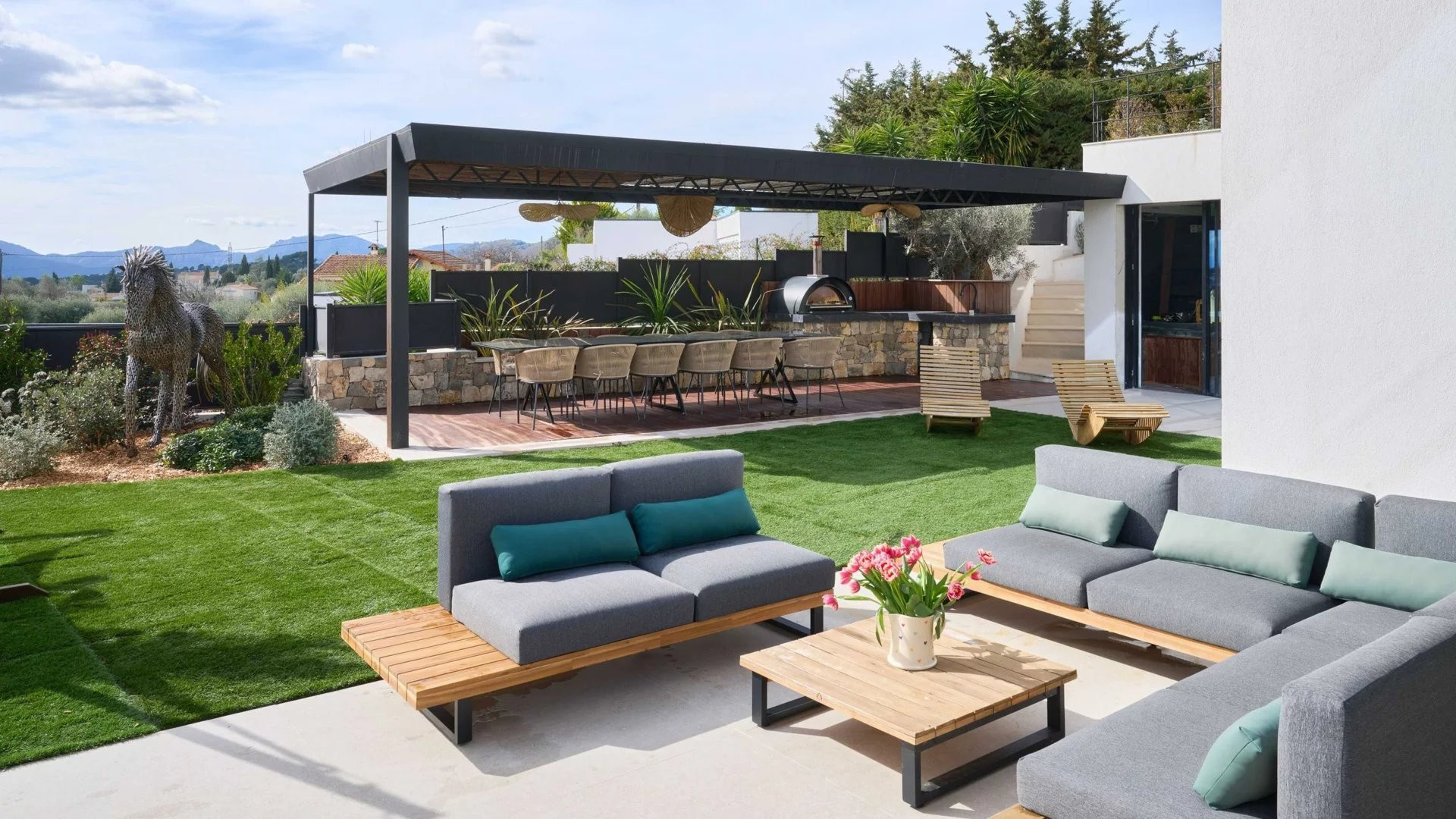 -Pool house avec vestiaires et une cuisiné d’été équipée d’un four à pizza.