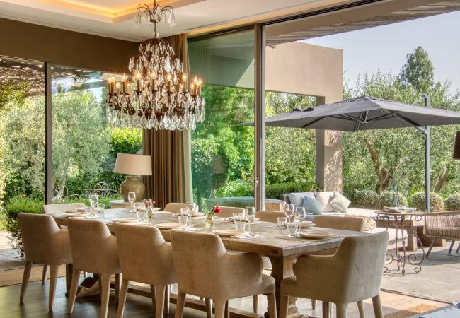 Nichée dans un écrin de verdure paysager de 1 800 m², à seulement quelques minutes à pied du célèbre village historique de Mougins, cette élégante villa de style néo-provençal offre un cadre raffiné mêlant charme local et confort contemporain. Entièrement rénovée, elle déploie 400 m² d’espaces de vie lumineux, décorés avec sobriété et chaleur.