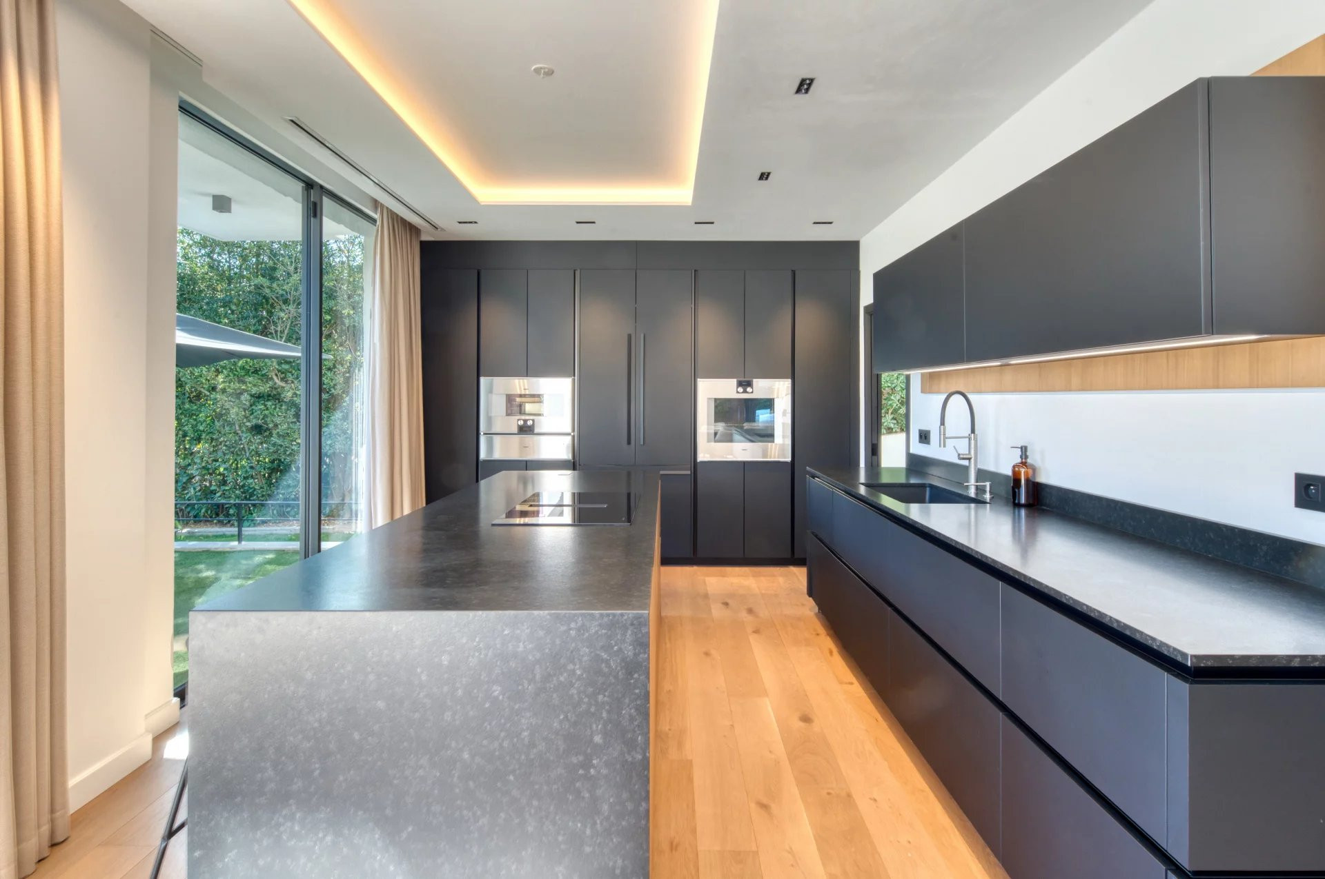 En rez-de-jardin, les extérieurs se prolongent par un pool house avec cuisine d’été, une salle à manger extérieure, un terrain de pétanque, trois grandes pelouses, un vaste parking privé pavé, ainsi qu’un garage pour deux voitures. Le niveau inférieur accueille un espace bien-être complet avec salle de sport, sauna et home cinéma.