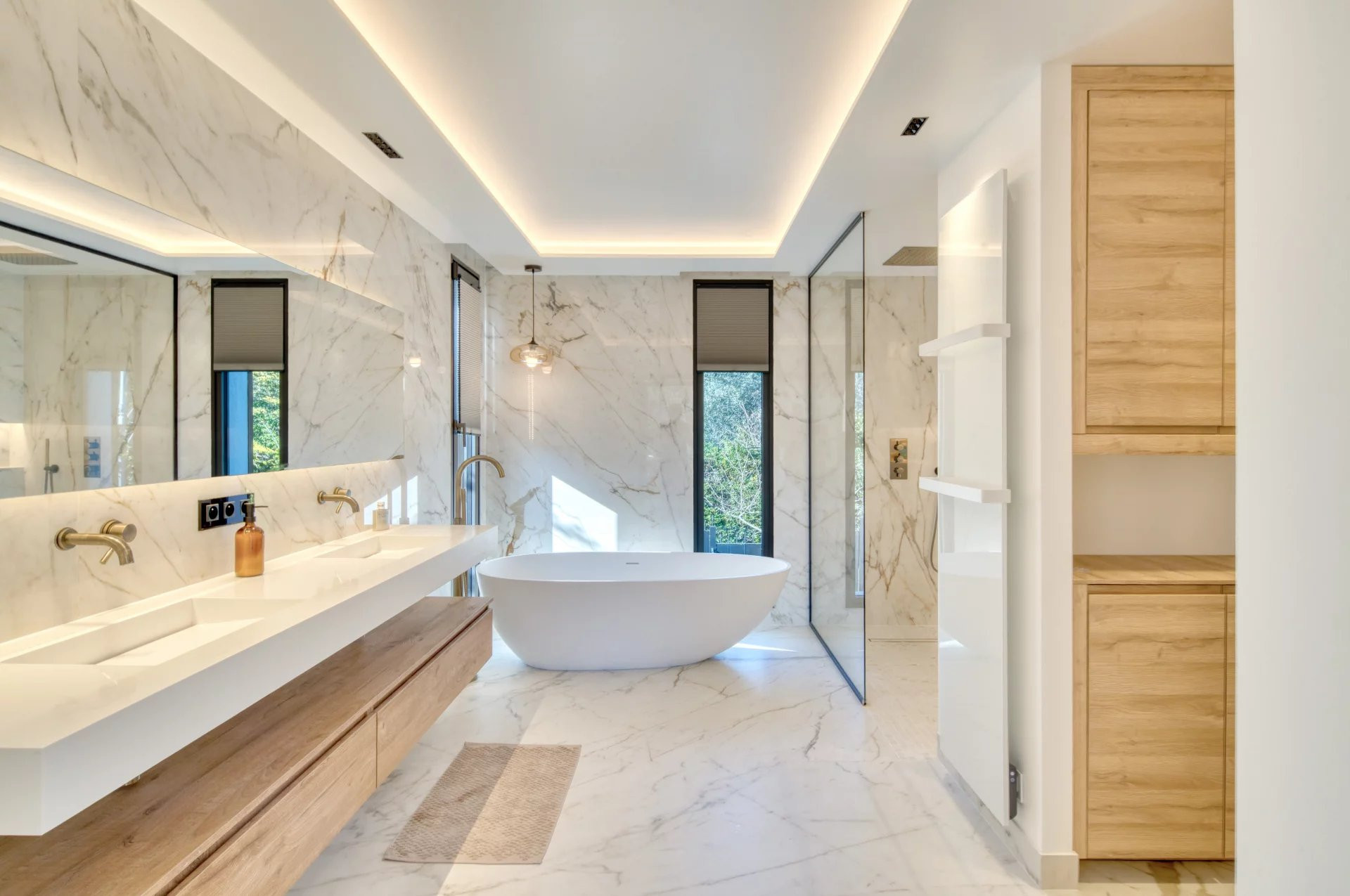 Nichée dans un écrin de verdure paysager de 1 800 m², à seulement quelques minutes à pied du célèbre village historique de Mougins, cette élégante villa de style néo-provençal offre un cadre raffiné mêlant charme local et confort contemporain. Entièrement rénovée, elle déploie 400 m² d’espaces de vie lumineux, décorés avec sobriété et chaleur.
