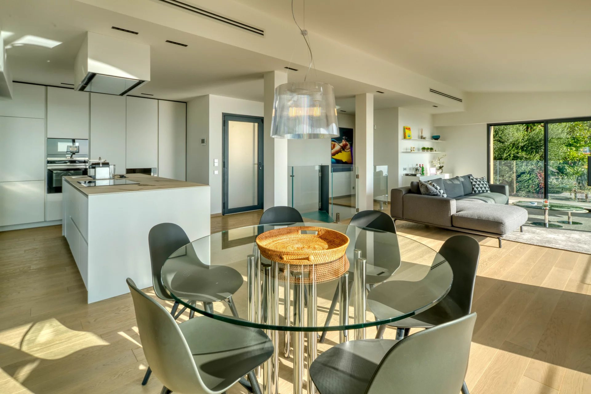 La villa se compose de deux niveaux, avec un spacieux séjour, une cuisine entièrement équipée avec cave à vins, et quatre chambres en suite, assurant confort et intimité pour ses occupants. Cette résidence est idéale pour une famille ou pour ceux recherchant un cadre de vie calme et élégant.