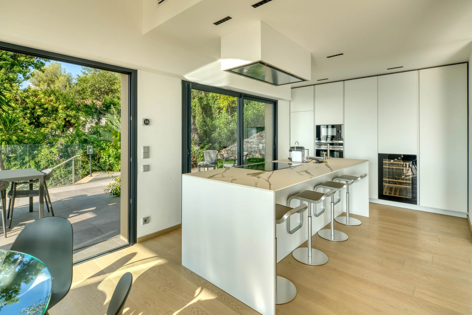 Nous vous proposons à la location saisonnière cette paisible villa d’architecte rénovée et sécurisée dans le quartier très prisé du Hameau de Roquebrune Cap Martin.