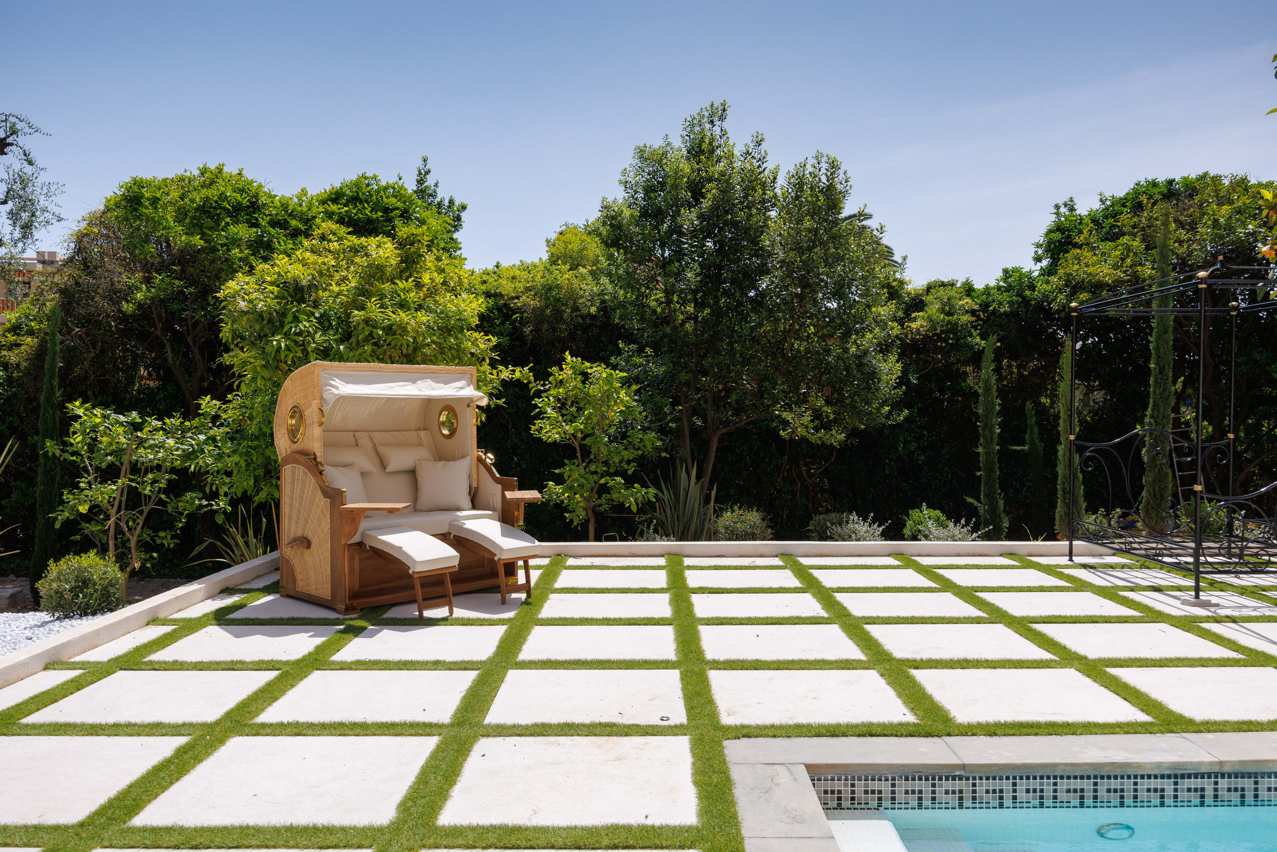-Immaculate swimming pool in the heart of landscaped gardens