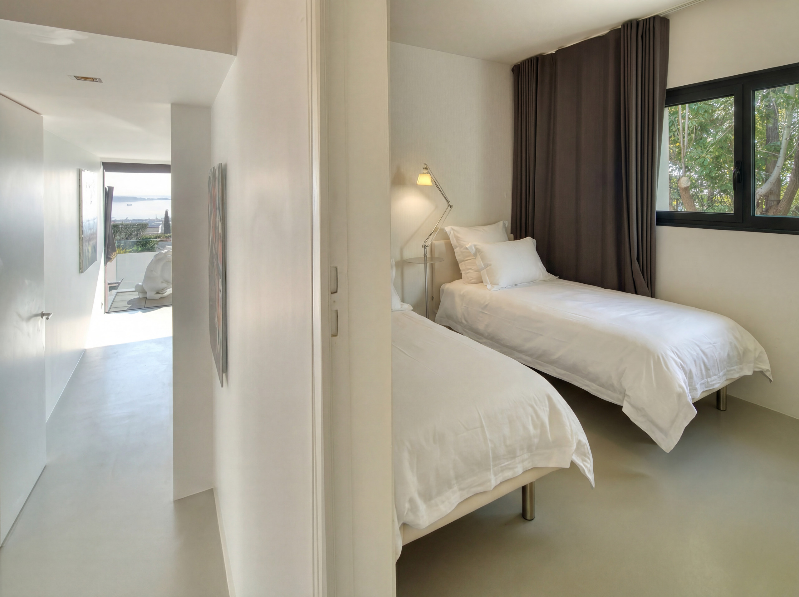 The vast living area with living room and dining room benefits from a beautiful sea view thanks to large bay windows, bringing in luminosity.