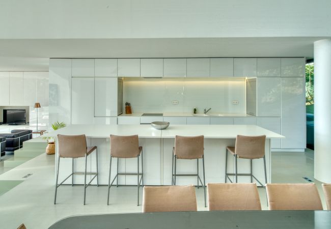 The open kitchen, fully integrated into the living space, harmoniously completes the whole.
