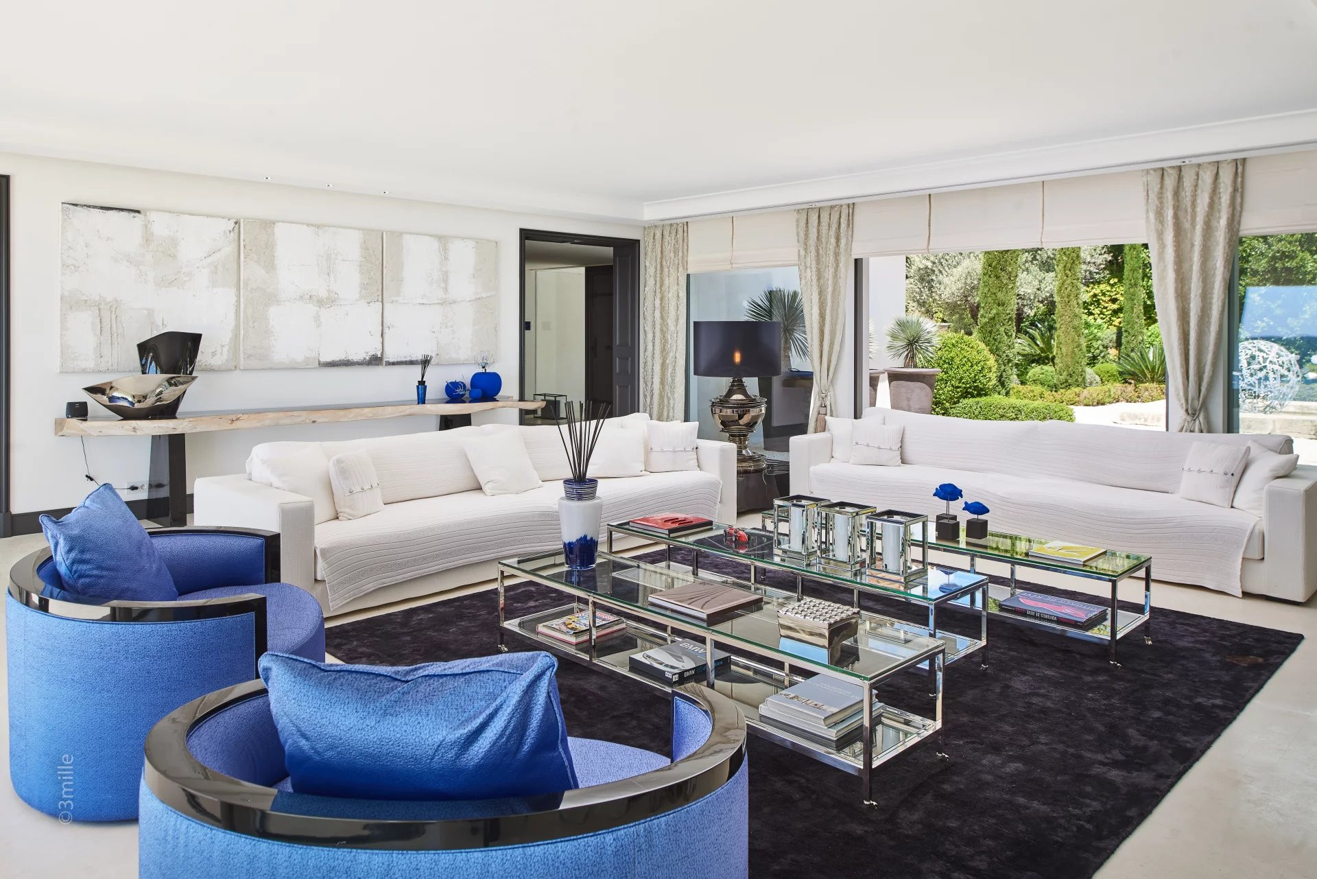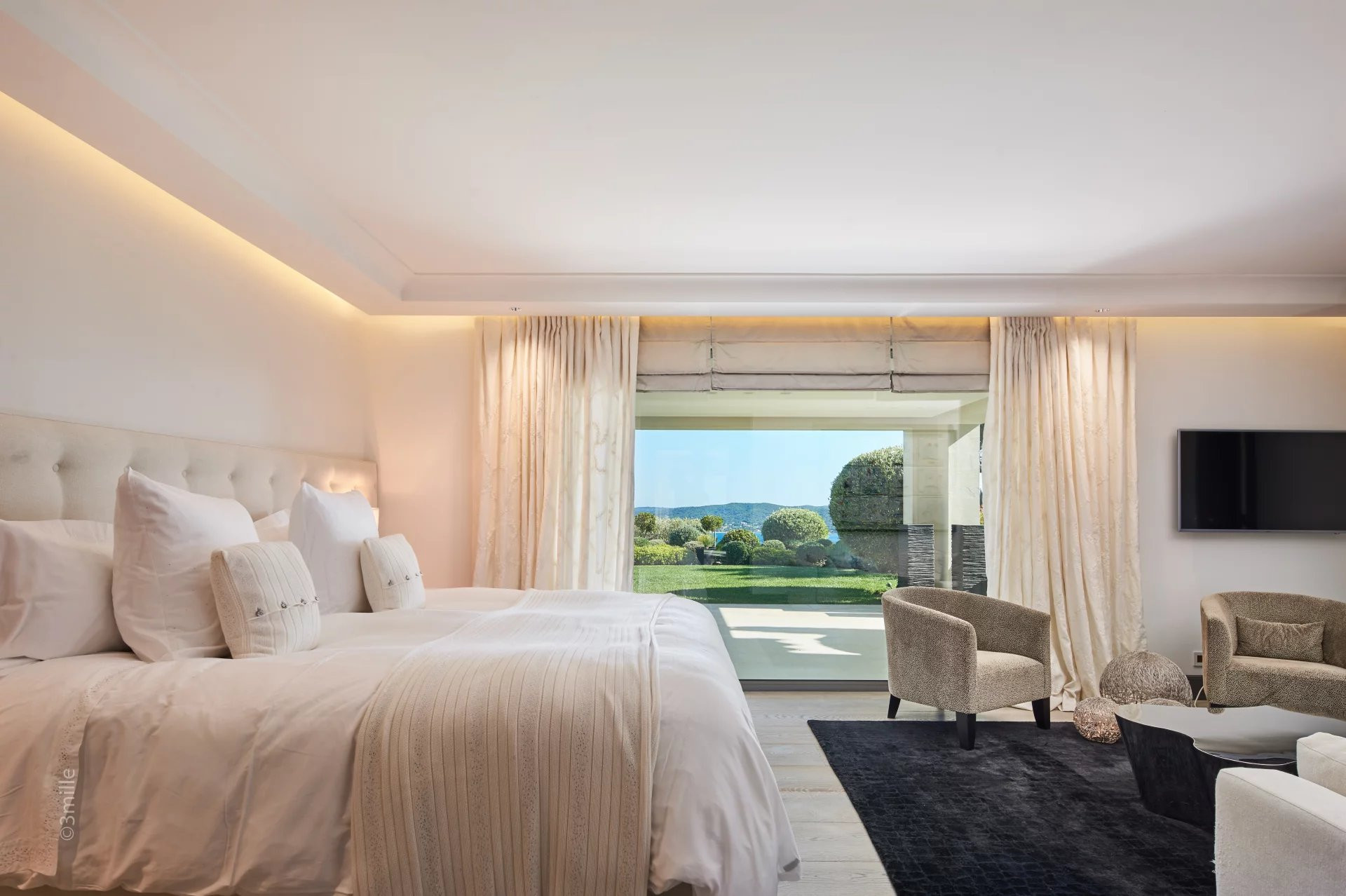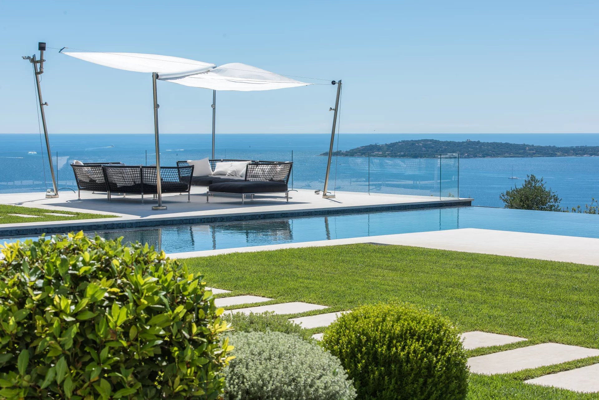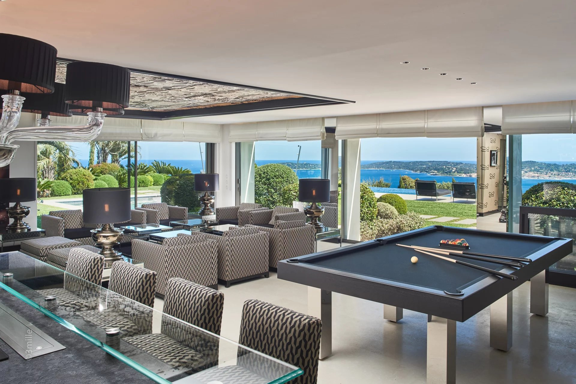The villa is 790 m². It has views of waterfront and the garden.