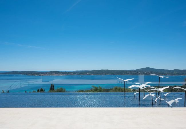 The villa in Grimaud has 6 bedrooms and has capacity for 12 people. The villa is 790 m². It has views of waterfront and the garden. The property is located 0 m from the train station, 0 m from the international airport, 2 km from the sand beach, 2 km from the golf course, 10 km from the city, 80 km from the airport.The accommodation is equipped with the following items: garden, garden furniture, fenced garden, terrace, washing machine, dryer, barbecue, fireplace, internet (Wi-Fi), hair dryer, balcony, childrens area, gym / fitness centre, alarm, air conditioning throughout the house, private swimming pool, private heated swimming pool, covered parking the same building, TV.In the gas open plan kitchen, refrigerator, microwave, oven, freezer, dishwasher, dishes/cutlery, kitchen utensils, coffee machine, frying pan, toaster, kettle and juicer are provided.