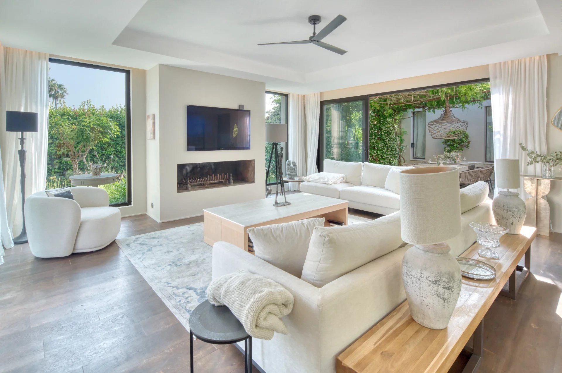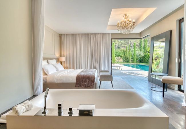 The villa in Mougins has 4 bedrooms and has capacity for 8 people.