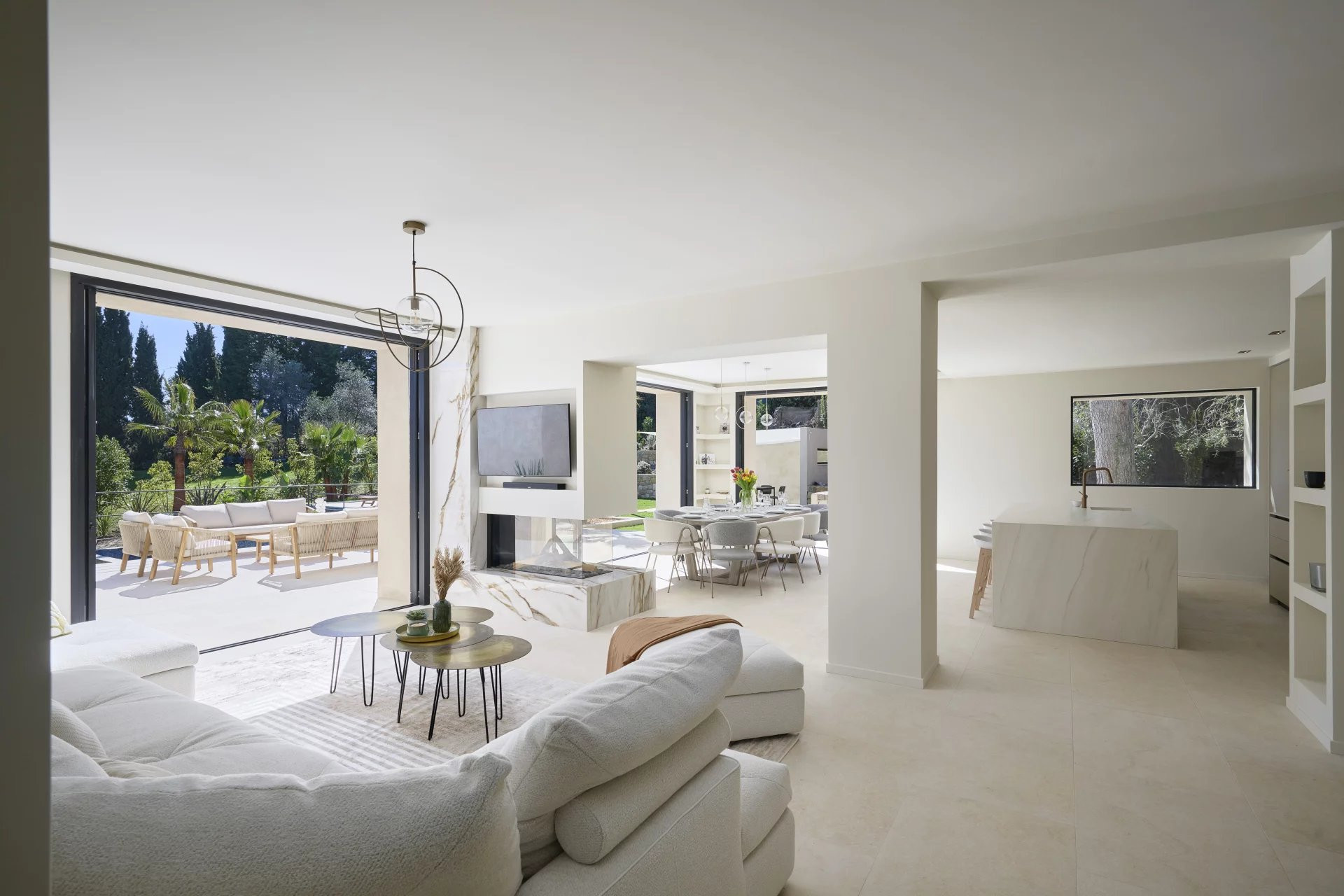 The villa in Mougins has 5 bedrooms and has capacity for 10 people. The villa is 400 m². The property is located 2 km from CARREFOUR MARKET supermarket, 7 km from CANNES city, 8 km from CROISETTE sand beach, 10 km from GOLF OPIO VALBONNE golf course, 26 km from AÉROPORT DE NICE airport.The accommodation is equipped with the following items: garden, garden furniture, fenced garden, terrace, washing machine, dryer, internet (Wi-Fi), hair dryer, alarm, central heating, air conditioning throughout the house, private heated swimming pool, garage and car park the same building, TV.In the open plan kitchen, refrigerator, microwave, oven, freezer, dishwasher, dishes/cutlery, kitchen utensils, coffee machine, toaster and kettle are provided.